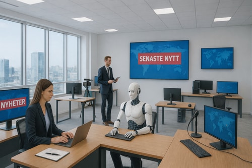 Dagsnyheter kommenterade av AI-expert – humor i tangentens riktning och AI-glitter i ögonen.